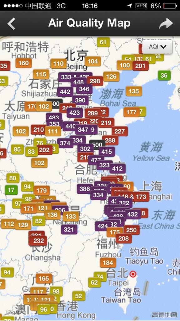 you think we have problems. Here is a pollution map of China – safe level is 25.