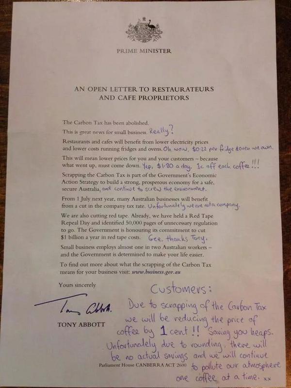 Letter from Abbott to restaurateurs and café owners
