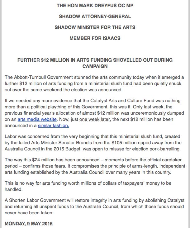 Labor slams late-night $12m Arts funding splurge by Coalition just hours before caretaker mode kicked in
