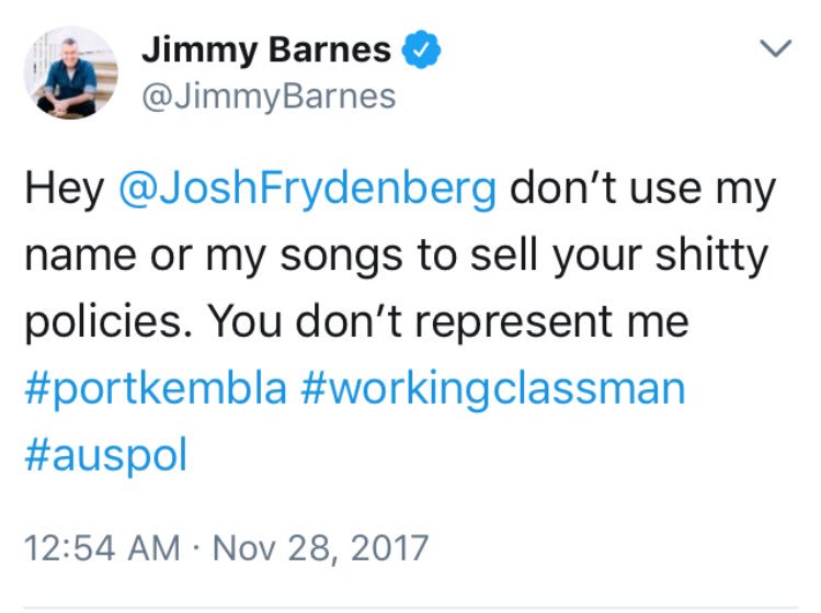 Jimmy Barnes. Straight to the point. Well done!!