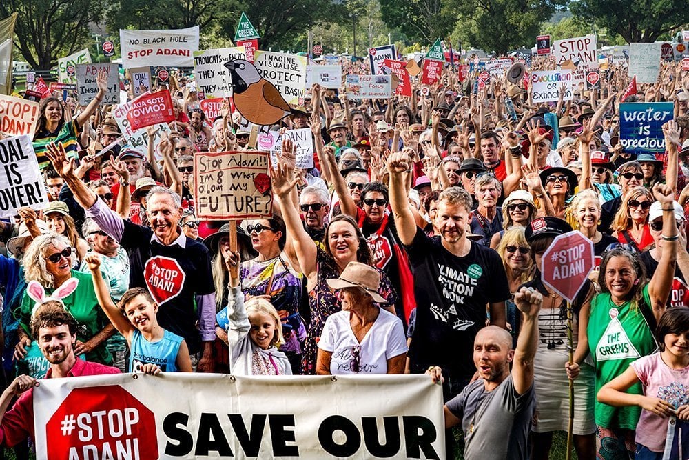5000 supporters of the anti-adani convoy at Mullumbimby welcoming the caravan of courage
