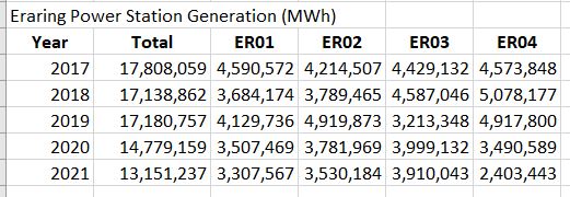 “Note trend in output. Down 25% in four years. Note that last year’s output could have been easily met without E04. Note that Taylor’s statements re replacement capacity required are overstated by at least a factor of two. I don’t think that he is capable of understanding the nature of electricity demand.”