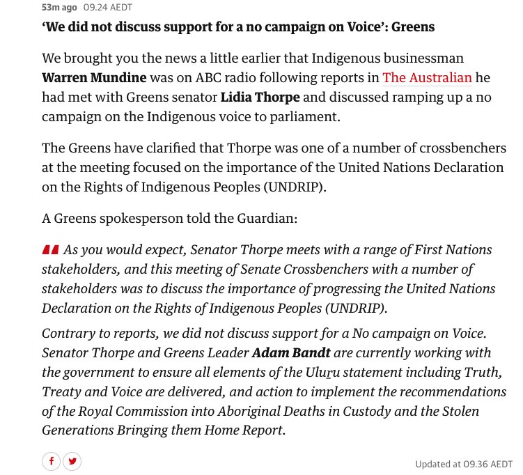 It appears that the things that were discussed, UNDRIP, Bringing Them Home, Aboriginal Deaths in Custody and The Greens’ particular construction of ‘Truth, Treaty and Voice’ (Voice last, Truth and Treaty first).
