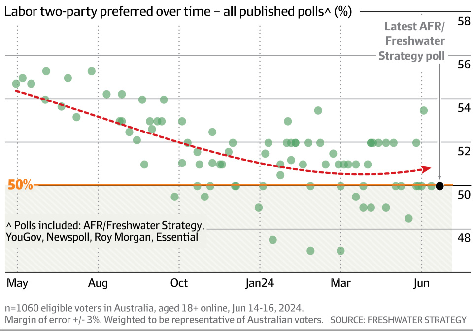 https://www.afr.com/politics/federal/labor-slumps-on-climate-cost-of-living-as-albanese-s-ratings-fall-20240616-p5jm40