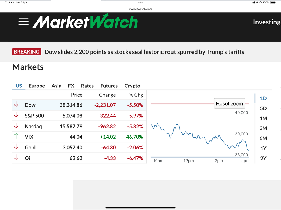 The DJI is down fluctuating between 2000-2100 points, which is over -5.00%