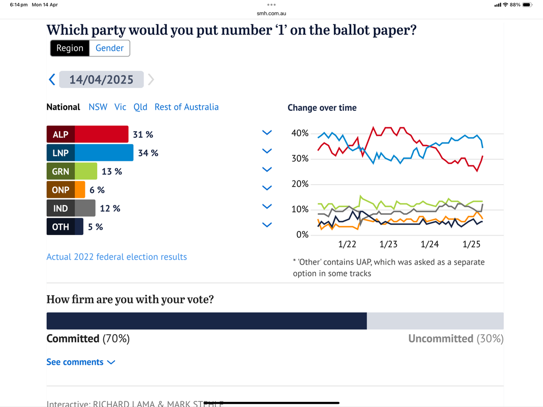 Resolve Poll Labor 53.5% 2PP: https://www.smh.com.au/politics/federal/trump-backlash-shifts-voters-from-dutton-to-albanese-poll-20250414-p5lrls.html