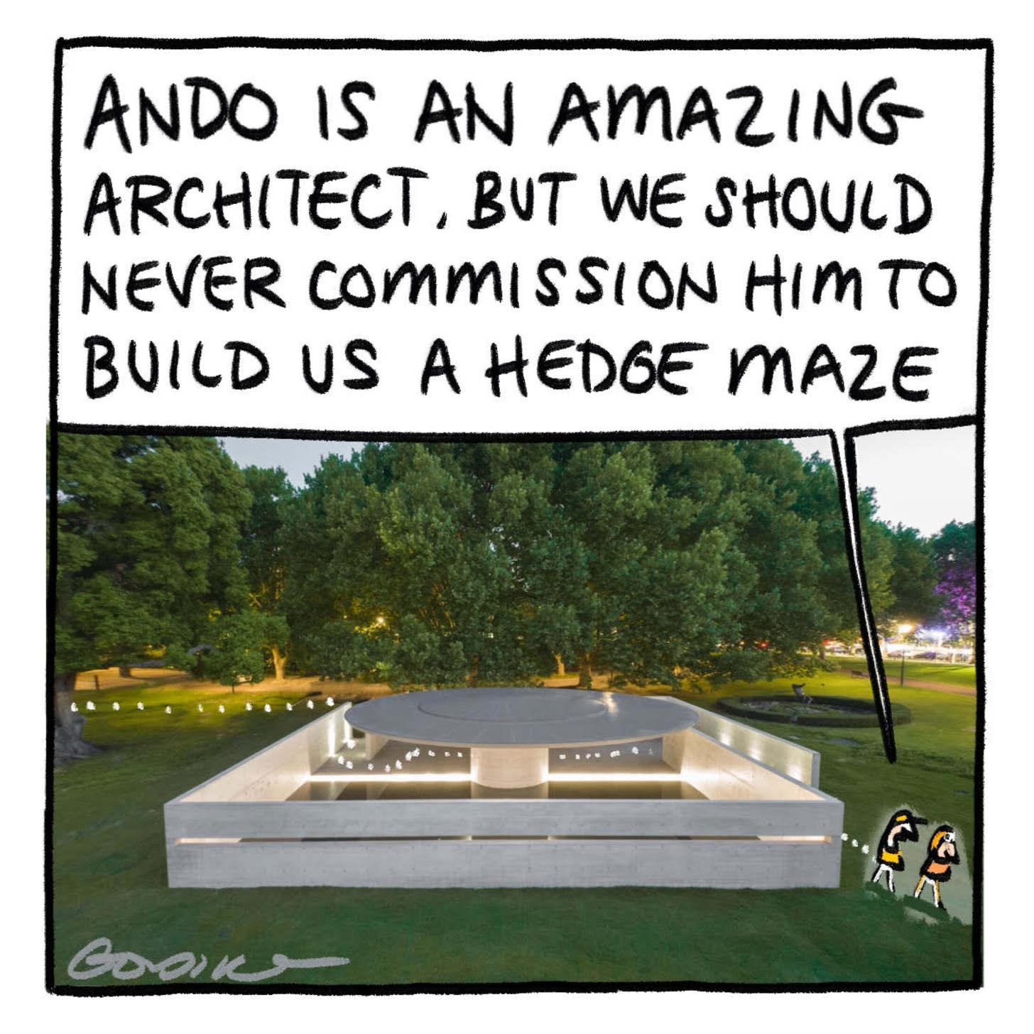 Agenda documents raise concerns that Ando’s pavilion is climbable, its blank external walls are susceptible to tagging and graffiti and “the design not being consistent with best-practice gender-equity place principles”.