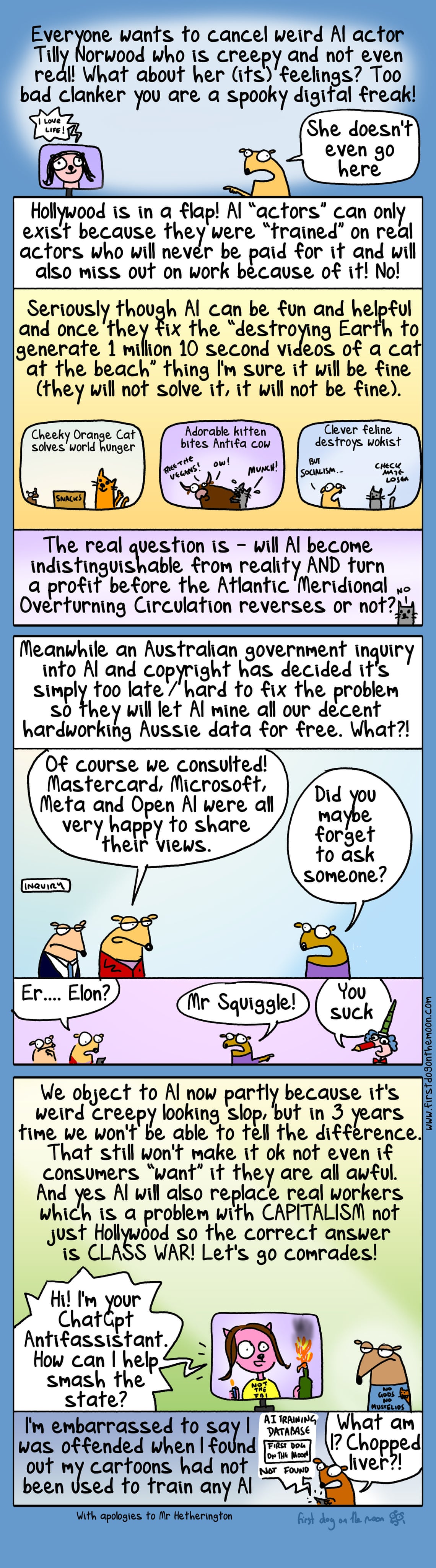 First Dog On the Moon: Hollywood is in a flap! AI ‘actors’ are ‘trained’ on real actors who will never be paid for it